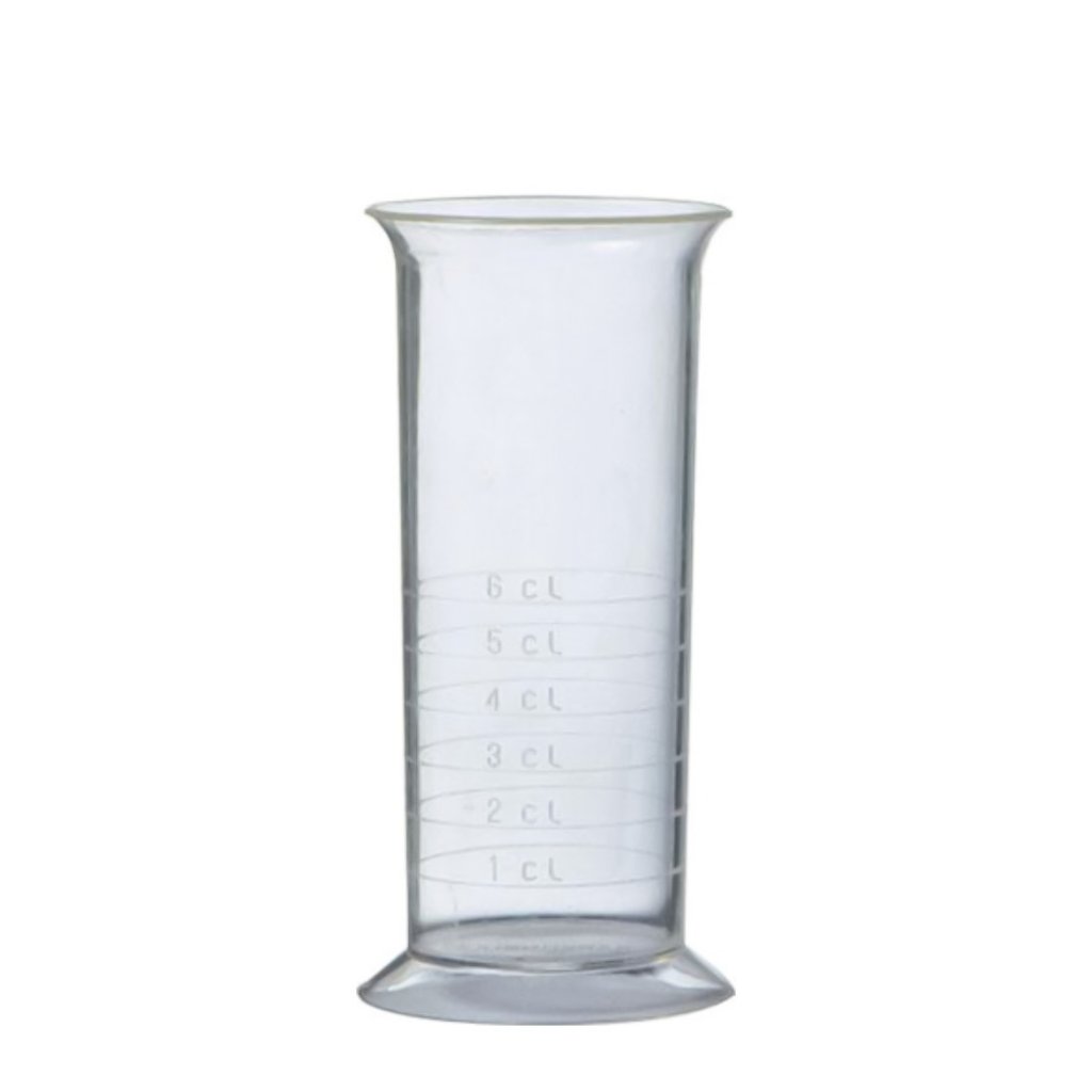 Ett praktiskt och lättanvänt mätglas i transparent plast med tydliga markeringar för exakt dosering vid blandning av drinkar och cocktails.